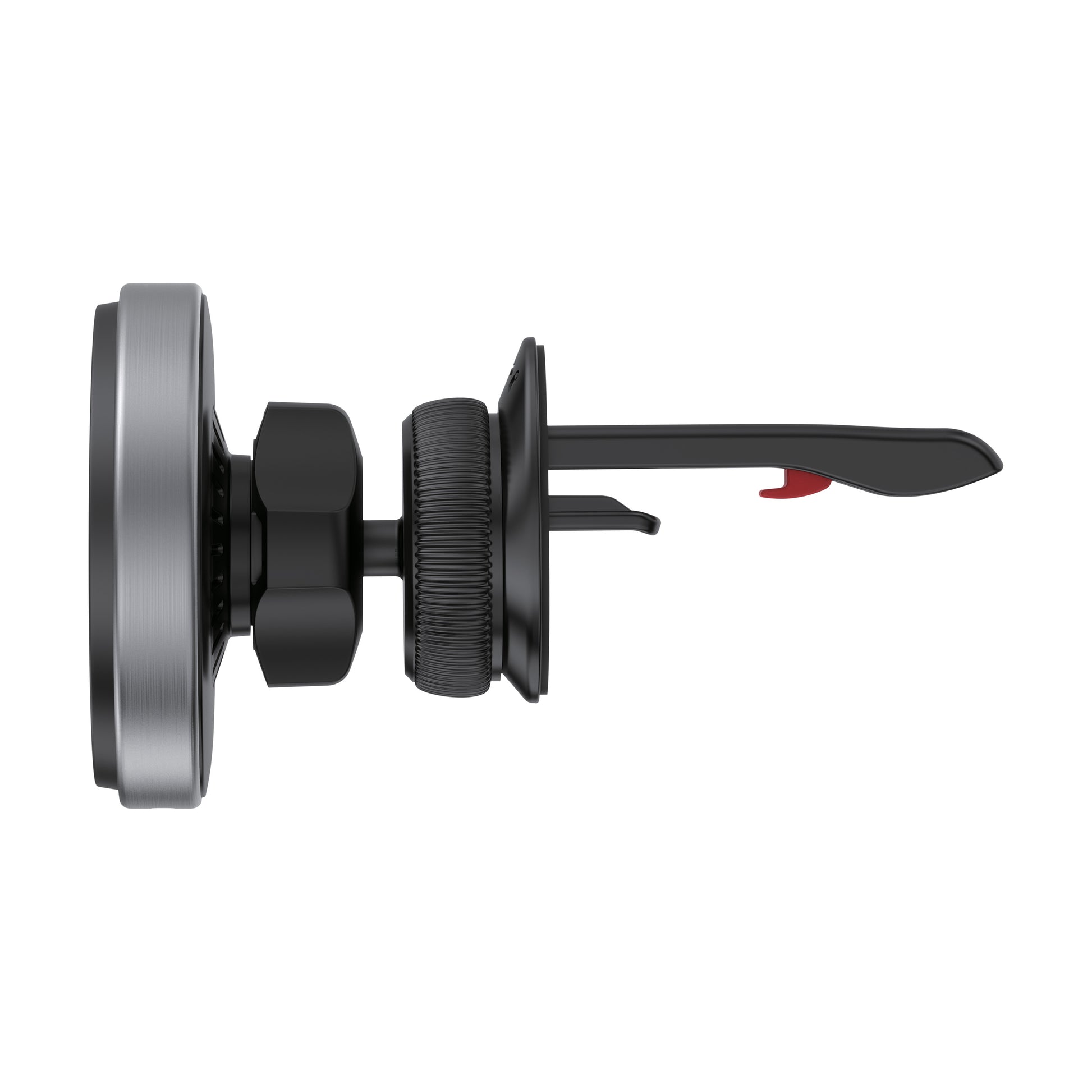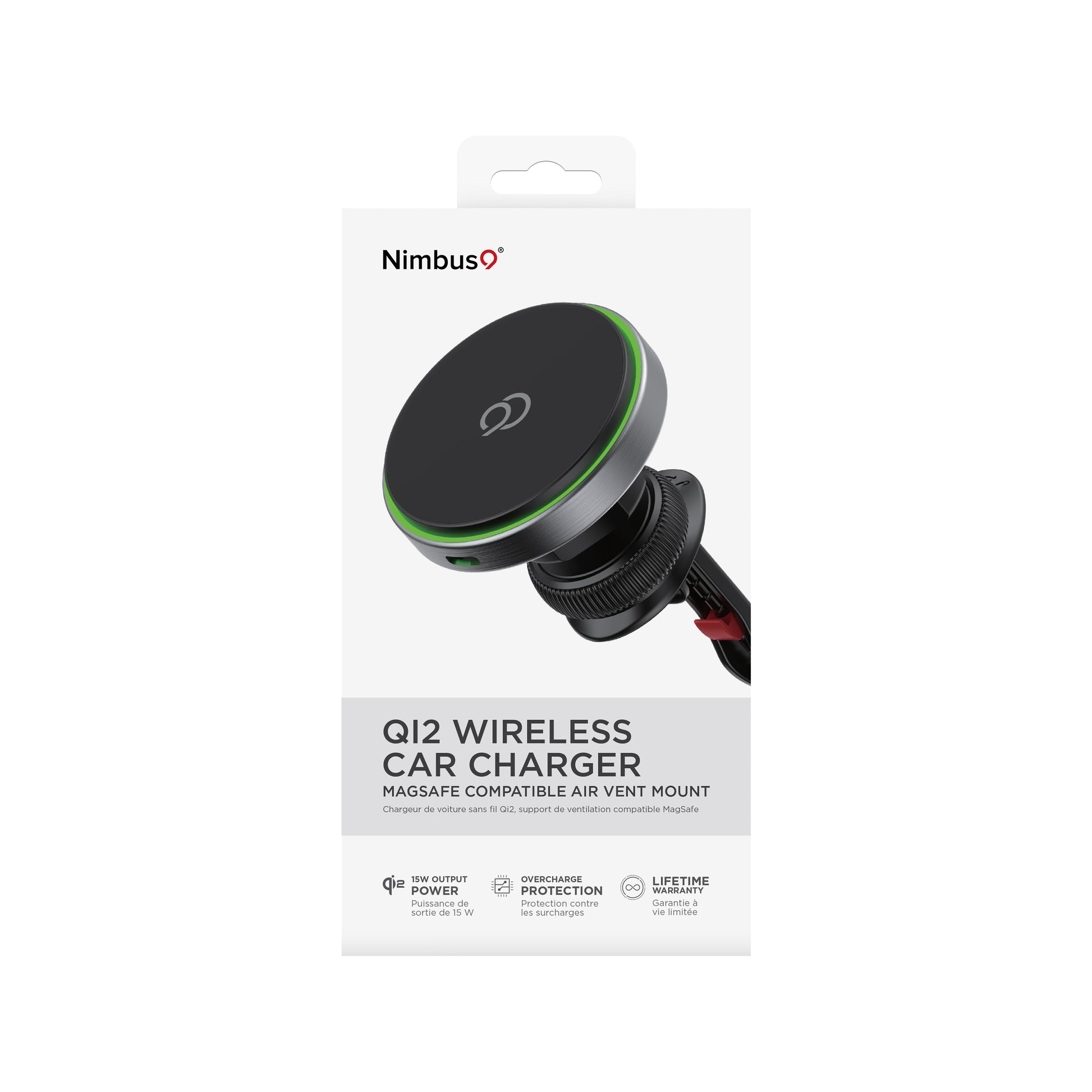 Stay charged and secure while on the road with the Nimbus9 Qi2 Wireless Car Charger Mount. Designed for Qi2 and MagSafe-compatible devices, this compact charger delivers up to 15W of fast, reliable wireless power—no cables needed. Its brushed gray finish adds a premium touch, while the rotary locking clamp and 360° swivel ball head ensure a stable fit and optimal viewing angle on your car’s air vent.