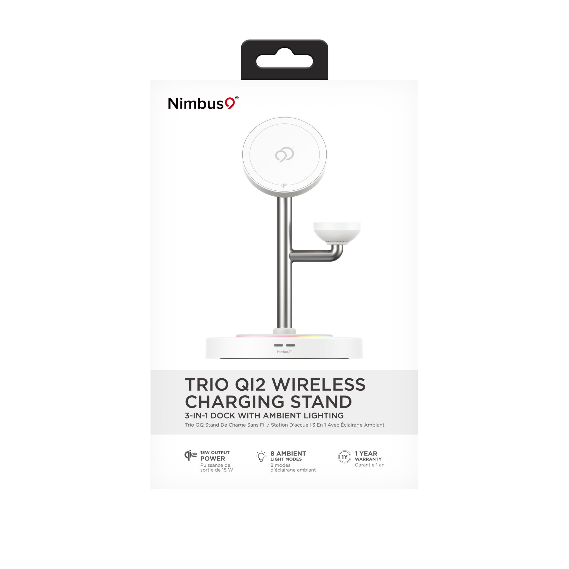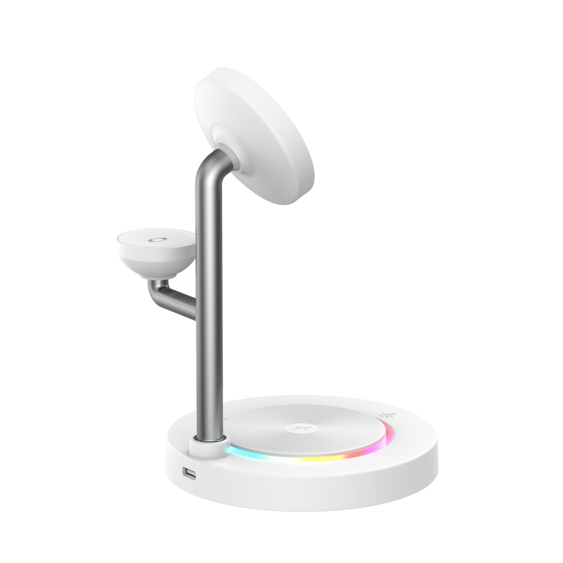 Nimbus9 TrioStand 3-in-1 Qi2 Wireless Charging Stand with Ambient Lighting MagSafe Compatible for Phone, Earbuds & Smartwatch - White