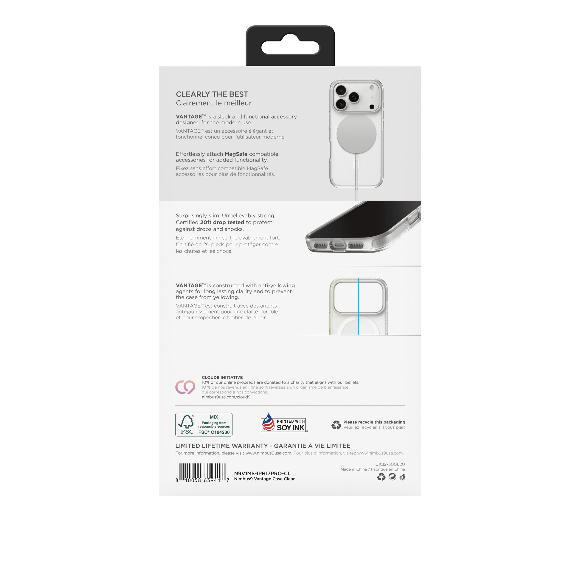 The Nimbus9 Vantage MagSafe Case is designed for those who demand a seamless blend of style, protection, and convenience. Engineered with 20ft drop protection, it delivers robust defense against accidental drops and impacts, keeping your device safe in any situation. Crafted for effortless MagSafe compatibility, the Vantage Case ensures secure magnetic attachment for seamless charging and accessory integration. The ultra-slim profile offers a comfortable grip, while the raised camera edge protection safeguards your lens from scratches, preserving the clarity of every shot. Built with anti-yellowing technology, the Vantage Case maintains its crystal-clear appearance, ensuring long-lasting transparency and elegance. Responsive tactile buttons and precise access to action buttons provide an intuitive, seamless user experience. Designed for modern users who refuse to compromise, the Nimbus9 Vantage MagSafe Case offers the ultimate balance of durability, functionality, and timeless style.